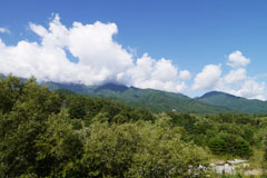三景園とは、場内より南アルプスを見渡したとき『鳳凰三山』『甲斐駒ヶ岳』『八ヶ岳』の3つの代表的な山の景色が見えること、そして『山』『川』『森』の3つの景色が楽しめることから命名されました。
