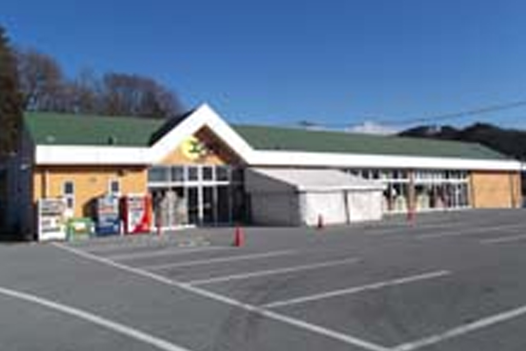 白州町の道の駅はくしゅうに併設するスーパー。夏には天然氷のかき氷屋さんが出店。