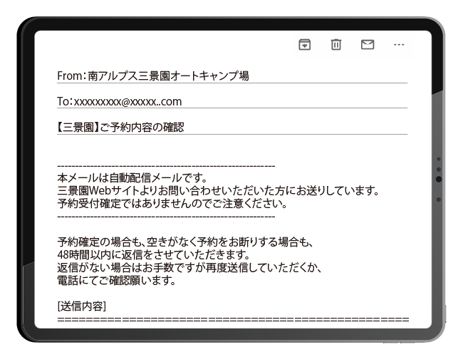 ※このメールは内容確認の自動返信メールで受付確定ではありませんのでご注意ください。