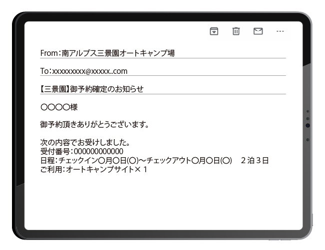 ※予約フォームで送信いただいてすぐに自動返信メールが届かない場合は、お客様のメールのセキュリティ設定等で受信できていない可能性がございます。